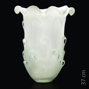 Vaso Em Cristal Murano Branco - São Marcos 37cm Vaso Em Cristal Murano Branco - São Marcos é uma peça decorativa produzida 100% artesanalmente com a técnica secular e originária da Itália, a qual com muita maestria e criatividade são desenvolvidas e preservadas no brasil pela Cristais São Marcos desde 1962.