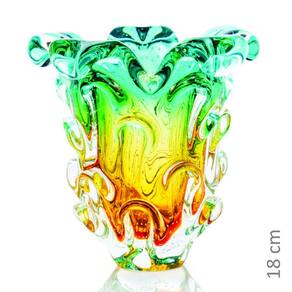 Vaso Em Cristal Murano Esmeralda E Âmbar - São Marcos 18cm Vaso Em Cristal Murano Esmeralda E Âmbar - São Marcos é uma peça decorativa produzida 100% artesanalmente com a técnica secular e originária da Itália, a qual com muita maestria e criatividade são desenvolvidas e preservadas no brasil pela Cristais São Marcos desde 1962.