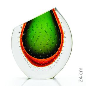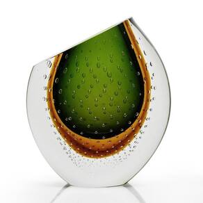 Vaso Em Cristal Murano Esmeralda E Âmbar - São Marcos 24cm Vaso Em Cristal Murano Esmeralda E Âmbar - São Marcos é uma peça decorativa produzida 100% artesanalmente com a técnica secular e originária da Itália, a qual com muita maestria e criatividade são desenvolvidas e preservadas no brasil pela Cristais São Marcos desde 1962.
