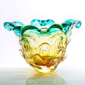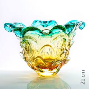 Vaso Em Cristal Murano Esmeralda E Ambar São Marcos Comprimento:35cm Largura:35cm Altura:21cm Peso:6840g Produzida 100% artesanalmente com a técnica secular e originária da Itália, a qual com muita maestria e criatividade são desenvolvidas e preservadas no Brasil pela Cristais São Marcos desde 1962. As escolhas das peças são versáteis e podem ser usadas para decorar casas e ambientes dos mais variados estilos. A tradição do Cristal Murano e a inovação em detalhes, formas e cores, trazem requinte para a decoração. O colorido do Muranoem especial, tornase um coringa na decoração e produzem um efeito muito bonito em locais com luz natural, não dependendo de nenhum outro elemento para se destacar. As peças em Cristal Murano, são atemporais, aposte nelas como a estrela da decoração ou ainda para harmonizar em combinações com diferentes artigos para compor um ambiente. Junto com as peças em Murano, leve ainda um pouco de história. Uma dica é misturar diferentes Muranos e criar sua coleção de arte particular. O cristal Murano, tornouse objeto de desejo por suas caracteristicas únicas. Sendo assim, com todas essas particularidades, ele é uma ótima escolha para decorar, colecionar e ainda presentear com classe e sofisticação.