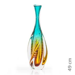 Vaso Em Cristal Murano Esmeralda E Âmbar São Marcos Comprimento:16cm Largura:56.35cm Altura:13.8cm Peso:5336g Produzida 100% artesanalmente com a técnica secular e originária da Itália, a qual com muita maestria e criatividade são desenvolvidas e preservadas no Brasil pela Cristais São Marcos desde 1962. As escolhas das peças são versáteis e podem ser usadas para decorar casas e ambientes dos mais variados estilos. A tradição do Cristal Murano e a inovação em detalhes, formas e cores, trazem requinte para a decoração. O colorido do Muranoem especial, torna-se um coringa na decoração e produzem um efeito muito bonito em locais com luz natural, não dependendo de nenhum outro elemento para se destacar. As peças em Cristal Murano, são atemporais, aposte nelas como a estrela da decoração ou ainda para harmonizar em combinações com diferentes artigos para compor um ambiente. Junto com as peças em Murano, leve ainda um pouco de história. Uma dica é misturar diferentes Muranos e criar sua coleção de arte particular. O cristal Murano, tornou-se objeto de desejo por suas características únicas. Sendo assim, com todas essas particularidades, ele é uma ótima escolha para decorar, colecionar e ainda presentear com classe e sofisticação. Ean: 7894728693681