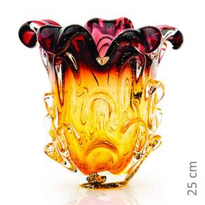 Vaso Em Cristal Murano Lilás E Âmbar - São Marcos 25cm Vaso Em Cristal Murano Lilás E Âmbar - São Marcos é uma peça decorativa produzida 100% artesanalmente com a técnica secular e originária da Itália, a qual com muita maestria e criatividade são desenvolvidas e preservadas no brasil pela Cristais São Marcos desde 1962.