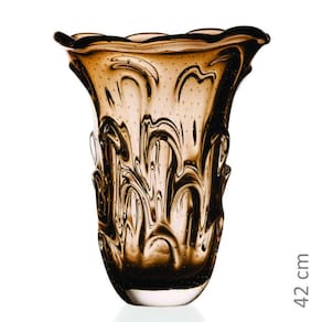 Vaso Em Cristal Murano Marrom - São Marcos 42cm Vaso Em Cristal Murano Marrom - São Marcos é uma peça decorativa produzida 100% artesanalmente com a técnica secular e originária da Itália, a qual com muita maestria e criatividade são desenvolvidas e preservadas no brasil pela Cristais São Marcos desde 1962.