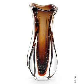 O Vaso Em Cristal Murano Da São Marcos é uma peça decorativa produzida 100% artesanalmente com a técnica secular e originária da Itália, a qual com muita maestria e criatividade são desenvolvidas e preservadas no brasil pela Cristais São Marcos desde 1962. A tradição do cristal murano e a inovação em detalhes, formas e cores, trazem requinte para a decoração. O colorido do murano em especial, torna-se um coringa na hora de decorar e produz um efeito muito bonito em locais com luz natural, não dependendo de nenhum outro elemento para se destacar. As peças em cristal murano, são atemporais, aposte nelas como a estrela da decoração ou ainda para harmonizar em combinações com diferentes artigos para compor um ambiente. Ficha Técnica Marca: São Marcos Modelo: Vaso Em Cristal Murano Marrom São Marcos Ref.: 4360 MD Material: Cristal Murano Cor: Marron Medidas A x C x L : 42 x 17 x 15 cm Peso: 4.884g Conteúdo Da Embalagem: 01 Vaso Em Cristal Murano Marrom - São Marcos Junto com as peças em murano, leve ainda um pouco de história. Uma dica é misturar diferentes muranos e criar sua coleção de arte particular. O cristal murano, tornou-se objeto de desejo por suas características únicas. Sendo assim, com todas essas particularidades, ele é uma ótima escolha para decorar, colecionar e ainda presentear com classe e sofisticação. IMPORTANTE: Produto produzido de forma artesanal, são admitidas nas características finais do processo de produção desse produto pequenas variações de peso, formato, cor e ainda o aparecimento de minúsculas bolhas de ar, típicas do cristal murano. Ean: 7894728708897