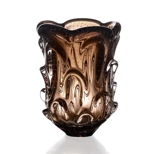 Vaso Em Cristal Murano Marron São Marcos Comprimento:18cm Largura:18cm Altura:26cm Peso:5910g Produzida 100% artesanalmente com a técnica secular e originária da Itália, a qual com muita maestria e criatividade são desenvolvidas e preservadas no Brasil pela Cristais São Marcos desde 1962. As escolhas das peças são versáteis e podem ser usadas para decorar casas e ambientes dos mais variados estilos. A tradição do Cristal Murano e a inovação em detalhes, formas e cores, trazem requinte para a decoração. O colorido do Muranoem especial, torna-se um coringa na decoração e produzem um efeito muito bonito em locais com luz natural, não dependendo de nenhum outro elemento para se destacar. As peças em Cristal Murano, são atemporais, aposte nelas como a estrela da decoração ou ainda para harmonizar em combinações com diferentes artigos para compor um ambiente. Junto com as peças em Murano, leve ainda um pouco de história. Uma dica é misturar diferentes Muranos e criar sua coleção de arte particular. O cristal Murano, tornou-se objeto de desejo por suas características únicas. Sendo assim, com todas essas particularidades, ele é uma ótima escolha para decorar, colecionar e ainda presentear com classe e sofisticação.