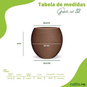 Vaso Grafiato Oval 32 (24L) Cor Ferrugem NUTRIPLAN Descrição * O Vaso Grafiato Nutriplan é a escolha ideal para quem busca elegância e durabilidade em vasos decorativos. * Com um design único e uma textura sofisticada que remete ao acabamento grafiato, este vaso se destaca como uma peça versátil para ambientes internos e externos * Trazendo um toque rústico e contemporâneo que se adapta a diversos estilos de decoração. * Fabricado com polietileno, o Vaso Grafiato oferece excelente resistência a impactos e proteção contra raios UV, garantindo sua durabilidade mesmo em condições externas. * Além de ser fácil de limpar e manter, este vaso é perfeito para acomodar plantas ornamentais de diferentes tamanhos, incluindo árvores frutíferas em seus modelos maiores, e pode ser utilizado em composições em jardins, varandas ou na decoração de interiores em salas e escritórios. * Transforme seu espaço com o Vaso Grafiato Nutriplan, a solução perfeita para quem deseja unir beleza e funcionalidade na decoração. Características * Tamanho: N°32 * Altura: 32 cm * Largura (Boca): 28,4 cm * Largura (Fundo): 21,2 cm * Capacidade: 24 Litros * Cor: Ferrugem * Material: Polietileno Informações/Dicas/Usos * Possui proteção UV das cores. * Produto leve. * 100% feito a mão. Nós da CULTIV.ME trabalhamos desde 2013 para trazer os melhores produtos ao alcance de todos. CULTIV.ME o verde que faltava!