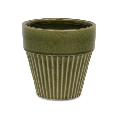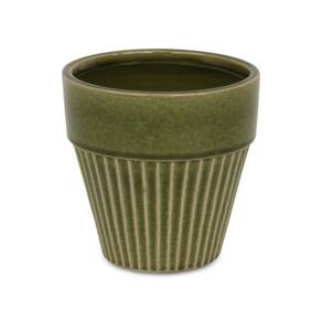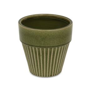 Vaso de cerâmica Cheungs Corseta com padrão forrado vertical cônico - Grande - Verde oliva