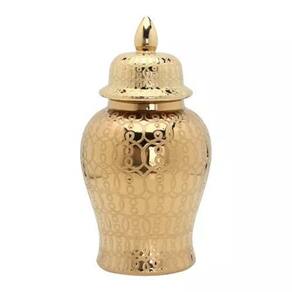 Vaso Grande Dourado Decorativo Porcelana Chinesa 65x34 Vaso Grande Decorativo de Porcelana Chinesa Dourada