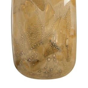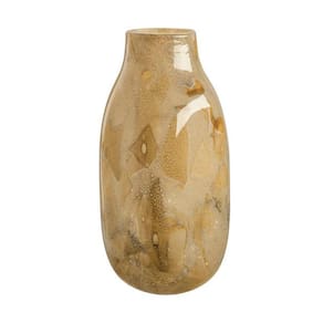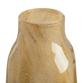 O Vaso Samoa tem 34 cm e cada peça tem um padrão único, decorrente do processo manual de produção do vidro soprado que usa técnicas artesanais na sua produção. Os tons amarelados trazem um toque de cor que se destaca.