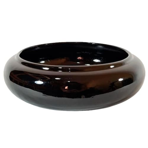Vaso ikebana baixo redondo cerâmica decor de plantas garden - black