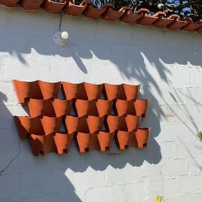 Vaso Modular de Parede (41X14X19) Cor Terracota OKLA Descrição * Transforme seu espaço com vasos modulares feitos de material 100% reciclado. * Com um sistema de irrigação em cascata, suas plantas receberão água de maneira eficiente. * Esses vasos com encaixe são perfeitos para serem utilizados como divisórias ou paredes vivas.* Oferecem uma solução prática e elegante para os amantes de plantas com pouco espaço para cultivar. * Possuem opções de montagem versáteis: podem ser fixados e empilhados na parede ou dispostos em fileiras amarrados de costas. * Leve, prático, resistente e funcional.
