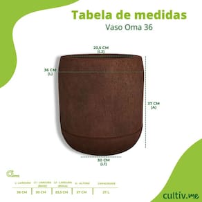 Vaso Oma 36 (27L) Cor Aço Corten JAPI Descrição * O vaso Oma 36, assinado pelo paisagista e influencer Murilo Soares. * Esta linha é inspirada na beleza dos xaxins onde as avós de Murilo cultivavam suas plantas, sendo uma homenagem à tradição familiar e ao respeito ao meio ambiente. * Confeccionada em polietileno de alta qualidade, oferecendo durabilidade tanto para ambientes internos quanto externos. * Combinando estilo duradouro com valores atemporais. Fazendo a Linha Oma uma ótima escolha para o seu espaço. * Com estilo moderno e atemporal e textura em relevo.
