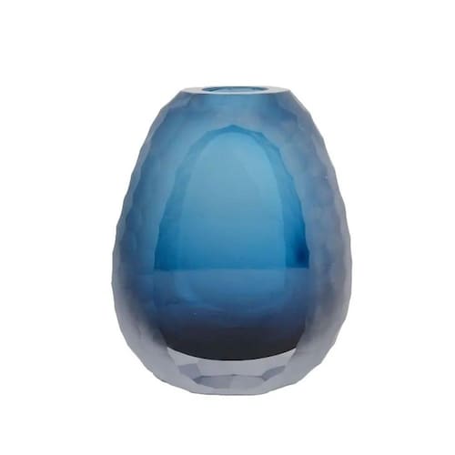 Vaso Oval Vidro Murano Italiano 22X18Cm Médio Azul