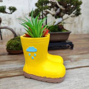 Material: resina Peso: 300 g Tamanho: 10,5 x 10,8 x 9,8 cm Design exclusivo de botas de chuva — Adorável vaso de flores em forma de botas de chuva em amarelo brilhante com padrão de nuvem de gota de chuva, adicionando um toque divertido às exibições de plantas. Material de resina durável — Feito de resina premium, este vaso é leve, resistente e ideal para decoração interna e externa. Tamanho compacto e fácil posicionamento — mede 10,5 x 10,8 x 9,8 cm e pesa 300 g, perfeito para desktops, prateleiras de sacadas, parapeitos de janelas ou mesas. Uso multiuso — Funciona como vaso de flores, vaso de plantas ou vaso decorativo para suculentas, cactos, ervas ou pequenas plantas verdes. Charming Home Accent — Adiciona uma atmosfera alegre e criativa à sua varanda, escritório, sala de estar ou jardim com seu lindo design em forma de bota.