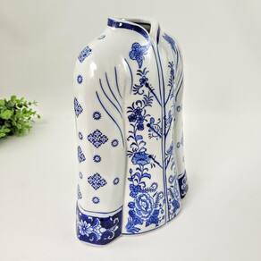 Vaso Decorativo de Porcelana Azul e Branco Formato Jaqueta Inigual Decor