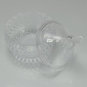 Apresentamos nosso Potiche Bomboniere, o toque final encantador para qualquer ambiente. Este potiche não apenas adiciona um toque de elegância à sua decoração, mas também é uma solução prática para armazenar e exibir doces, chocolates e outras delícias. Feito com vidro de alta qualidade e detalhes intrincados, é uma peça que atrai os olhares e encanta os sentidos. Coloque-o em sua mesa de centro, aparador ou prateleira para adicionar um toque de sofisticação e um ponto focal visualmente atraente ao seu espaço. Seja para uso pessoal ou como presente elegante, nosso Potiche Bomboniere é a escolha perfeita para elevar o charme da sua casa.