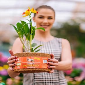 O Vaso Nutricoco é leve, com excelente capacidade de reter umidade para as raízes das plantas e com drenagem perfeita. Ele é feito de fibra de coco e já vem com furos de drenagem. É ideal para o plantio de plantas epífitas como samambaias, avencas, jiboias, orquídeas, bromélias e flor-de-maio.