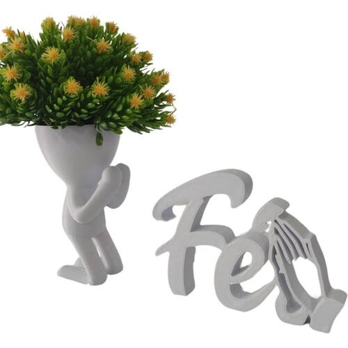 Vaso Robert Orando + Palavra Fé - Decoração Religiosa Sala Cor: branco Enfeite sua casa com fé e estilo: Kit Decoração Religiosa com Vaso Orando e Letreiro 3D Fé Cultive a fé e a positividade no seu lar com este kit decorativo único e inspirador. O vaso em formato de mãos em prece, feito de plástico PLA resistente e não agride a natureza mais importante , é perfeito para abrigar suas suculentas favoritas. E para completar, o letreiro Fé em 3D traz um toque moderno e cheio de significado para sua decoração. Detalhes encantadores: