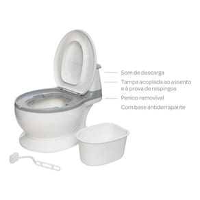 Vaso Sanitário Infantil com SomSom de descargaO Vaso sanitário é a solução ideal para a transição da fralda para o Banheiro. Ele se assemelha a um vaso sanitário de adulto, em tamanho ideal para o pequeno adquirir sua independência.Possui botão que emite som de descarga, tampa acoplada e assento com design a prova de respingos. Seu penico é removível, para facilitar a limpeza.E conta com um compartimento que pode armazenar lenços umedecidos. Além disso, possui base antiderrapante para garantir a segurança .Cada criança tem seu próprio ritmo, mas, com ele, o treinamento no banheiro será mais fácil, rápido e divertido.32 x 27 x 38 (AxLxP) cmCaixa: 40 x 28 x 24 (AxLxP) cm 1 sortimento| Múltiplo: 1 pçTampa acoplada ao assento e à prova de respingosPenico removívelCom base antiderrapanteAcompanha escova para higienizaçãoSuporta até 25 quilosIdade: 12+