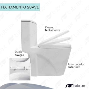Conteúdo da embalagem: 1 Vaso Monobloco com válvulas instaladas; 1 Assento com sistema Anti-Ruído; 1 Anel de vedação.