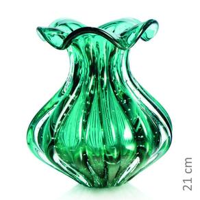 Vaso Trouxinha Em Cristal Murano Esmeralda - São Marcos 21cm Vaso Trouxinha Em Cristal Murano Esmeralda - São Marcos é uma peça decorativa produzida 100% artesanalmente com a técnica secular e originária da Itália, a qual com muita maestria e criatividade são desenvolvidas e preservadas no brasil pela Cristais São Marcos desde 1962.
