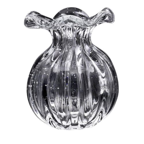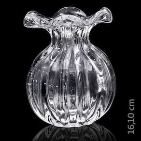 O Vaso Em Cristal Murano Da São Marcos é uma peça decorativa produzida 100% artesanalmente com a técnica secular e originária da Itália, a qual com muita maestria e criatividade são desenvolvidas e preservadas no brasil pela Cristais São Marcos desde 1962. A tradição do cristal murano e a inovação em detalhes, formas e cores, trazem requinte para a decoração. O colorido do murano em especial, torna-se um coringa na hora de decorar e produz um efeito muito bonito em locais com luz natural, não dependendo de nenhum outro elemento para se destacar. As peças em cristal murano, são atemporais, aposte nelas como a estrela da decoração ou ainda para harmonizar em combinações com diferentes artigos para compor um ambiente. Ficha TécnicaMarca: São MarcosModelo: Vaso Trouxinha Em Cristal Murano Transparente São MarcosRef.: 3289CTMaterial: Cristal MuranoCor: TransparenteMedidas A x C x L : 14 x 10 x 10 cmPeso: 1170gConteúdo Da Embalagem:01 Vaso Trouxinha Em Cristal Murano Transparente - São MarcosJunto com as peças em murano, leve ainda um pouco de história. Uma dica é misturar diferentes muranos e criar sua coleção de arte particular. O cristal murano, tornou-se objeto de desejo por suas características únicas. Sendo assim, com todas essas particularidades, ele é uma ótima escolha para decorar, colecionar e ainda presentear com classe e sofisticação. IMPORTANTE: Produto produzido de forma artesanal, são admitidas nas características finais do processo de produção desse produto pequenas variações de peso, formato, cor e ainda o aparecimento de minúsculas bolhas de ar, típicas do cristal murano.
