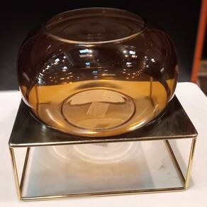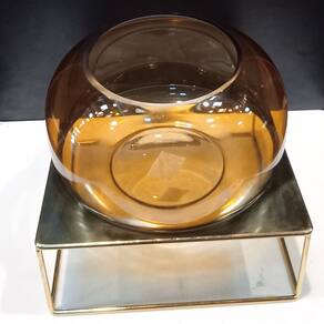 VASO DECORATIVO Altura: 22 cm Largura: 24 cm Profundidade: 24 cm Peso: 1,60 Kg Material: Vidro/Metal Cor: Âmbar