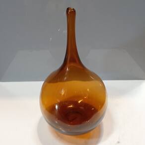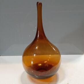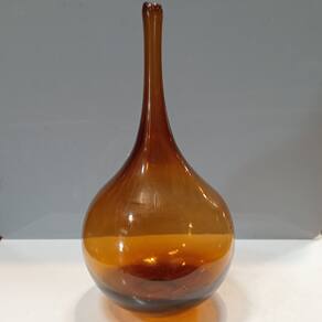 VASO Altura: 32,5 cm Largura: 15,5 cm Profundidade: 15,5 cm Peso: 1,20 Kg Diâmetro do Topo: 2 cm Material: Vidro Cor: Âmbar