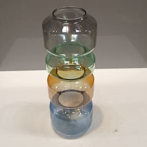 VASO Altura: 28,3 cm Largura: 9,5 cm Profundidade: 9,5 cm Espessura: ,3 cm Peso: 0,33 Kg Diâmetro do Topo: 6 cm Material: Vidro Cor: Multicolorido