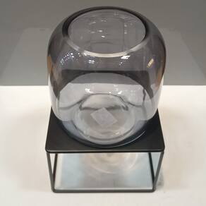 SEM SUPORTE Altura: 19,5 cm Largura: 17 cm Profundidade: 17 cm Peso: 1,09 Kg Diâmetro do Topo: 10,6 cm Material: Vidro Cor: Fumê