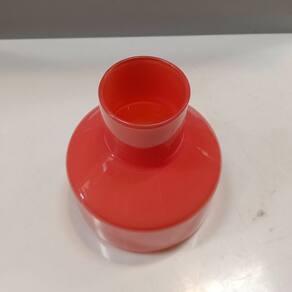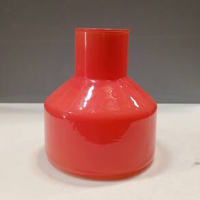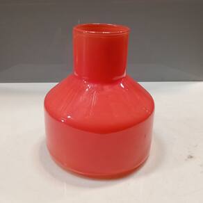 VASO Altura: 14,4 cm Largura: 12,8 cm Profundidade: 12,8 cm Espessura: ,3 cm Peso: 0,21 Kg Diâmetro do Topo: 5,9 cm Material: Vidro Cor: Laranja