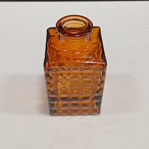 VASO Altura: 9,2 cm Largura: 5 cm Profundidade: 5 cm Peso: 0,19 Kg Diâmetro do Topo: 2 cm Material: Vidro Cor: Marrom
