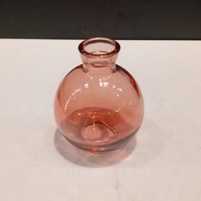 VASO Altura: 9 cm Largura: 7 cm Profundidade: 7 cm Espessura: ,3 cm Peso: 0,15 Kg Diâmetro da Base: 3,5 cm Diâmetro do Topo: 2,1 cm Material: Vidro Cor: Rosa
