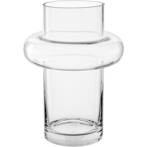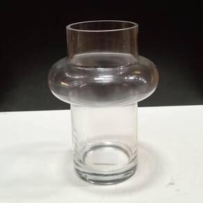 VASO Altura: 23,3 cm Largura: 15,5 cm Profundidade: 15,5 cm Espessura: ,5 cm Peso: 0,77 Kg Diâmetro da Base: 9,9 cm Diâmetro do Topo: 9 cm Material: Vidro Cor: Transparente