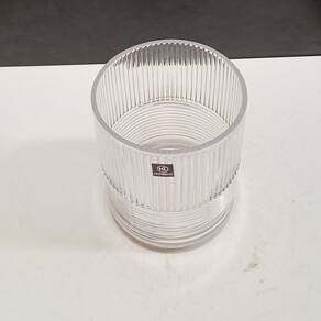 VASO Altura: 15,9 cm Largura: 12,6 cm Profundidade: 12,6 cm Espessura: ,4 cm Peso: 0,65 Kg Diâmetro da Base: 12,6 cm Material: Vidro Cor: Transparente