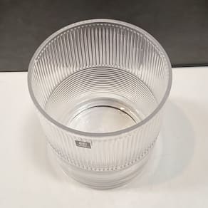 VASO Altura: 19,6 cm Largura: 16 cm Profundidade: 16 cm Espessura: ,3 cm Peso: 1,35 Kg Diâmetro do Topo: 15,2 cm Material: Vidro Cor: Transparente