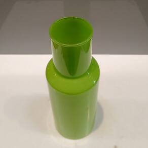 VASO Altura: 26 cm Largura: 9 cm Profundidade: 9 cm Espessura: ,3 cm Peso: 0,29 Kg Diâmetro do Topo: 6 cm Material: Vidro Cor: Verde