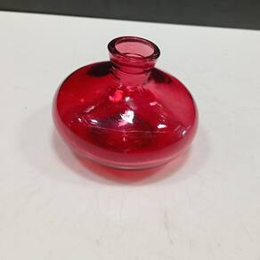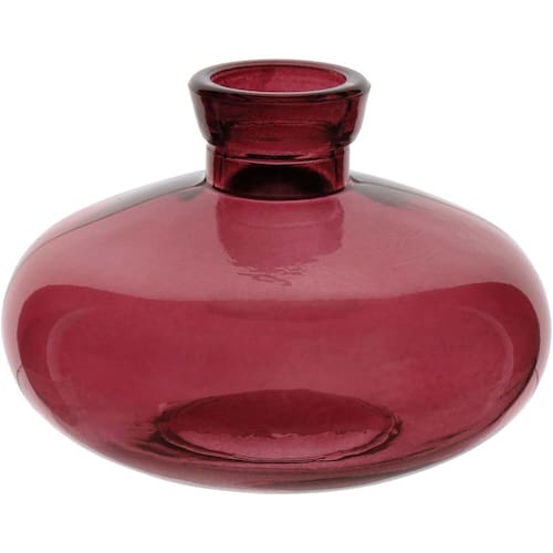 VASO Altura: 6,2 cm Largura: 8,5 cm Profundidade: 8,5 cm Espessura: ,4 cm Peso: 0,15 Kg Diâmetro do Topo: 2,1 cm Material: Vidro Cor: Vinho