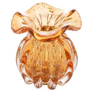 Vaso Wolff Italy de Vidro Âmbar e Dourado 10cm x 11cm