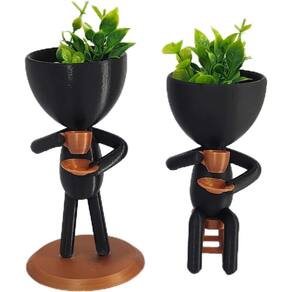 Cor: Preto com Cobre Dimensões aproximadamente 13 cm 2 Bonecos Bob sendo 1 em pé e 1 sentado Acompanha as plantinhas decorativas Marca: Não Informado Ean: 7890871303507