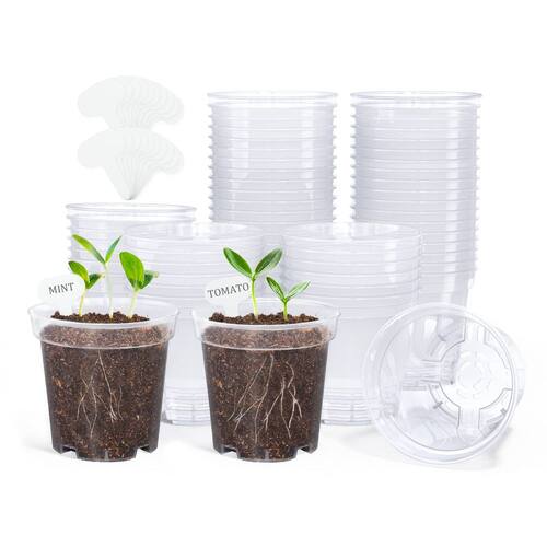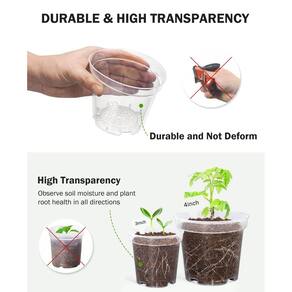 HOMENOTE Vasos transparentes de berçário para plantas, vaso de 7,6 cm para plantar vasos de plástico com orifícios de drenagem, vaso iniciante de sementes, vasos de flores de alta transparência com 20 etiquetas de plantas (pacote com 60) - ?Visão transparente do solo e sistema radicular?Ainda preocupado com as raízes podres da sua planta? Não tem certeza de quanto você deve regar? Então você precisa de vasos de berçário tão transparentes. Em comparação com os vasos de mudas de flores "semitransparentes" no mercado, você pode ter uma visão mais clara e intuitiva da umidade do solo e da saúde do sistema radicular da sua planta, o que ajudará você a confirmar a quantidade de irrigação e cuidar melhor do crescimento da sua planta por esses vasos para plantas. - Orifícios de drenagem abundantes: a parte inferior deste vaso de plástico vem com orifícios de drenagem de design exclusivo para manter o solo drenado e ventilado, de modo que os vasos de plantio transparentes permitem que o excesso de água flua e previnam o apodrecimento das raízes. O fundo dos vasos de plástico para plantas é levantado e a ventilação aprimorada pode melhorar a taxa de sobrevivência das sementes. - Reutilizável: este vaso de flores de plástico é feito de material plástico, você só precisa espremer os vasos de plástico para transplantar mudas dos vasos de plástico sem danificar as raízes das plantas. E este vaso de mudas é leve, textura macia, não é fácil de deformar e danificar, lavável e reutilizável. O fundo dos vasos de plástico para plantas é levantado e a ventilação aprimorada pode melhorar a taxa de sobrevivência das sementes. - O conjunto inclui. Este produto inclui 60 vasos internos e individuais com drenagem de 7,6 cm de diâmetro na abertura superior, 5,5 cm de diâmetro na parte inferior e 2,81 cm de altura (como mostrado na imagem do produto de vasos externos para plantas). E também oferecemos etiquetas de plantas brancas extras, convenientes para você marcar e diferenciar suas plantas. A parte inferior deste vaso de plástico vem com orifícios de drenagem para manter o solo drenado e ventilado! - ?Amplamente utilizado? Este vaso para plantas internas com drenagem pode ser utilizado como um vaso de transição de plantas para propagação de vegetais, estacas de enraizamento, plântulas, início de sementes, etc. Os vasos para plantas de interior também são adequados para cultivar suculentas e mini plantas de paisagismo, testemunhar o estágio de crescimento das plantas é uma coisa muito mágica e gratificante, usar os vasos de plantas com orifícios de drenagem para adicionar mais cores à sua vida!
