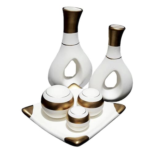 Jogo de vasos par furados e centro de mesa 3 cerâmica - white gold jogo de vasos par furados e centro de mesa 3 em cerâmica decor