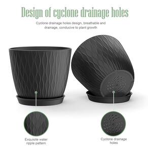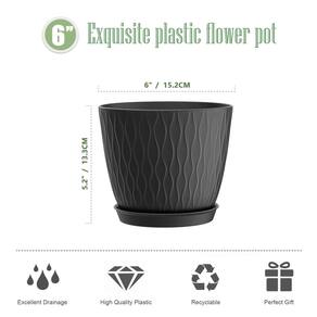 Vasos de plantas de 15 cm, pacote com 6 vasos de flores para uso interno e externo, vasos com orifícios de drenagem e pires, preto - Perfeito para replantar plantas de interior: este pacote com 6 vasos UOOUZ de 15 cm é ideal para replantar plantas e flores com tamanhos entre 7,6 e 12,7 cm. Estes vasos de plantas de 15 cm são recomendados para regar no máximo um terço do tamanho do recipiente. Para melhores resultados, use 1 litro (1L) de solo, equivalente a 0,03 pés cúbicos. - Vasos de plantas com orifícios de drenagem e pires: cada vaso de plástico possui 36 orifícios de drenagem em forma de folha para garantir a drenagem e ventilação adequadas do solo, evitando a perda de solo e o excesso de água. Estes 6 vasos de flores com drenagem vêm com pires destacáveis que permitem a fácil remoção do excesso de água, mantendo o solo moderadamente seco e promovendo o crescimento saudável das plantas. O design à prova de vazamento dos pires garante que não haja derramamentos bagunçados. - Acabamento fosco moderno, fácil de limpar: Feito de materiais PP duráveis, esses vasos de plástico para plantas externas têm um acabamento externo fosco moderno que é elegante e adequado para impressão em vinil. Estes vasos de plástico de 15 cm para plantas são fáceis de limpar, resistindo a manchas e mantendo uma aparência limpa, destacando a beleza de suas plantas e flores. - Decoração interna elegante: estes vasos modernos de formato redondo são perfeitos para decorar sua prateleira, peitoril da janela, mesa, cozinha, sala de estar, quarto, jardim, escritório e muito mais. Estes pequenos vasos para plantas de interior facilitam o cultivo de belas plantas dentro de casa, em uma varanda ou em cantos apertados de jardim. - Uso versátil: adequado para uma variedade de plantas de casa e flores, incluindo Aloe Vera, plantas de cobra, plantas de aranha, pothos, lírio da paz, plantas ZZ, menta, palmeira, cacto, orquídea, suculentas e outras pequenas plantas de interior. Melhore sua experiência de jardinagem interna com estes vasos elegantes e funcionais de 15 cm para plantas com drenagem. Estes pequenos vasos de flores e vasos de plástico para plantas são perfeitos para uso interno e externo, tornando-os recipientes ideais para plantas.
