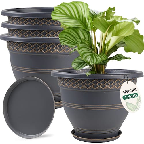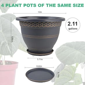 vasos de plantas de plástico resistente para ambientes internos e externos, vasos de flores - Decore seu pátio e casa – As plantas são muito especiais para as pessoas, elas podem curar nossa mente e coração, cultivar algumas plantas para obter um pouco de felicidade e adicionar um pouco de atmosfera natural à sua casa. - Vasos de flores de qualidade premium – os vasos de plástico são feitos de plástico PP premium que são resistentes, leves, não desbotam e racham com o tempo, ótimos para suas plantas crescerem. - Orifício de drenagem e pires – Existem 8 orifícios de drenagem na parte inferior de nossos vasos de jardim, que podem controlar o excesso de água, aumentar a capacidade de respiração e beneficiar o crescimento das plantas; o pires leve pode não apenas coletar o excesso de água, mas também manter seu chão ou mesa limpos. - Design retrô – padrão xadrez na parte superior do vaso de plantas, aparência clássica de vaso de plantas parece simples e elegante. Ideal para jardim, mesas, sala de estar e peitoril da janela. Ótimo presente para o dia das mães, dia dos pais, aniversário, Natal também. - Multiuso: nossos vasos internos vêm em vários tamanhos, adequados para plantas internas e externas, plantando várias plantas, como orquídeas, cobras, hortelã, ervas, cactos e aloe.