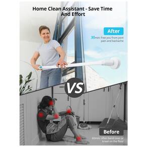 Design ergonômico Alça em forma de D permite que você segure a alça com firmeza mesmo quando suas mãos estão suadas, a haste de extensão retrátil de 27, 43 polegadas é feita de material ultraleve, para proporcionar uma limpeza eficiente. Chega de se abaixar ou subir a escada, limpar os ladrilhos do piso, o teto é apenas um pedaço de bolo, pois o peso do lavador elétrico giratório é de apenas 870g. Use nosso purificador elétrico de rotação a partir de hoje para proteger suas articulações do trabalho doméstico difícil