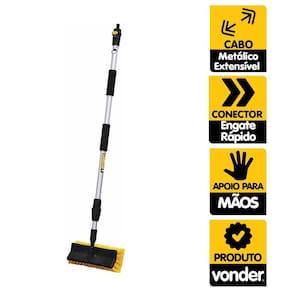Descubra a solução perfeita para a limpeza sem complicações Apresentamos a vassoura Vonder com cabo extensível, projetada para tornar sua vida mais fácil. Com um cabo metálico ajustável e um prático conector para engate rápido, você terá o controle total durante a limpeza. Adeus às dificuldades de alcançar lugares altos Além disso, suas cerdas especiais possuem furação interna na cepa, permitindo a passagem de água para uma limpeza eficaz e sem esforço de placas solares, para-brisas a paredes de vidro, de vitrines a tanques, essa vassoura é a solução completa para qualquer superfície. Simplifique sua rotina de limpeza e conquiste resultados impecáveis com facilidade