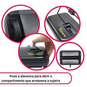 Vassoura Feiticeira Varredoura Nova Agora existe um jeito rápido e moderno para limpar pisos e carpetes de maneira eficiente, silenciosa e pratica. Conheça a revolucionária Vassoura Feiticeira Compact 1 Escova Mágica Modo de uso: Rosquear os cabos e encaixar na vassoura, feito isso, deslizar a mesma pelo piso para frente e para trás, após o uso, abrir o compartimento e despejar a sujeira no lixo. Marca: Feiticeira. Cor: Preto. Conteúdo da Embalagem: 1 vassoura + cabo desmontado. Peso líq. Aproximado do produto kg : 1,3 kg. do Fornecedor: 1 Ano. Defeitos de Fabricação, não cabendo a desgaste ou mau uso. Dimensões aproximadas do produto: Comprimento: 28cm. Altura: 7cm. Largura: 24cm. Marca: Não Informado Ean: 7892497201106
