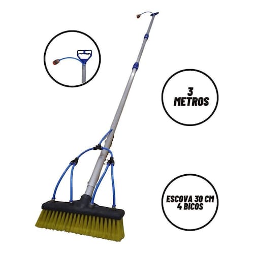 Contém: Vassoura com cerdas exclusivas Mangueira e conectores Cabo telescópico de 3 metros