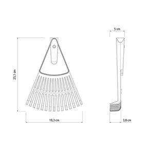 Características * Fabricada em polipropileno de alta resistência, proporcionando maior durabilidade e ótimo acabamento. * Possui 15 dentes fixos. * Possui olho de 23 mm de diâmetro * Altura: 5cm * Largura: 19,30cm* Comprimento: 25,10cm* Peso: 81g * Cor: Preta Informações/Dicas/Usos * A vassoura é indispensável para deixar o jardim sempre limpo e bonito. * Leve e prática, serve para recolher a grama cortada, folhas que caem com o vento e outros detritos presentes no gramado.