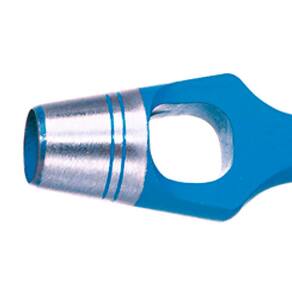 Aço especial. Corpo com acabamento em pintura na cor azul padrão Gedore e região de corte polida. Possui tratamento térmico. Indicado para estampar peças de borracha ou plástico de acordo com o diâmetro específico.